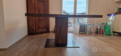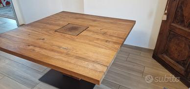 Vendo per mancato utilizzo (trasloco) tavolo di Riva1920 realizzato interamente in legno massello, con top di forma quadrata. Gamba centrale realizzata a liste incollate e vuota all'interno, con piastra a pavimento in ferro.