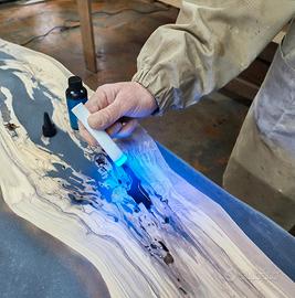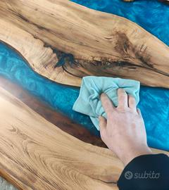 Realizziamo tavoli in legno e resina personalizzati su ordinazione concordando con il cliente le varie caratteristiche e misure.