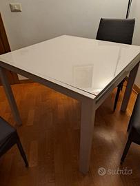 Tavolo in vetro temperato tortora, 90x90 allungabile 180 cm