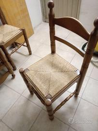 Tavolo rotondo in legno diametro 120 cm con supporto di 4 gambe alto 80 cm + 6 sedie in legno con base impagliata 40 x 40 Altezza 48 cm e schienale alto 94 cm vento a euro 80