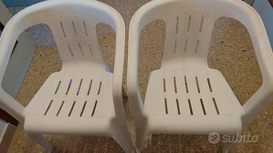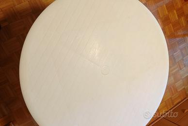 Vendo per inutilizzo, usato ma in buono stato, in resina bianca dura e resistente set tavolo rotondo smontabile di diametro 90 cm e 2 sedie poltroncina con braccioli e impilabili da esterno.