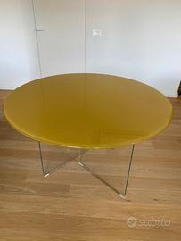 Tavolo Rotondo Air Slim Glass dell’azienda italiana LAGO. Finitura Piano: Vetro lucido color Ocra Finitura Gambe: Vetro extra-chiaro (trasparente) Dimensioni: Diamentro 120cm. Ottime condizioni.
