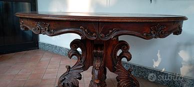 Tavolo rotondo in noce lavorato, diametro 120 e altezza 90, vendo a 80euro .