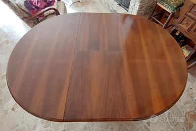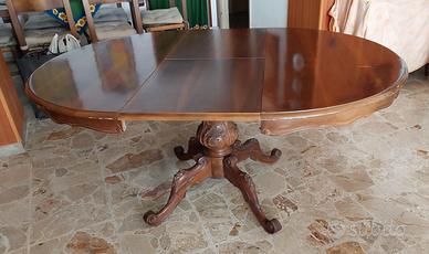 Tavolo rotondo allungabile per 4-6 persone, realizzato in legno massello, stile classico (modernariato vintage retrò).