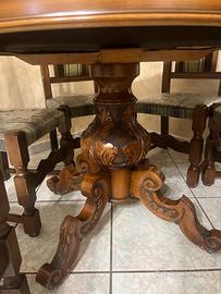 Tavolo rotondo allungabile antico, tutto intarsiato. Vendo comprensivo di sedie. Misure 118 chiuso, 155 aperto. Tavolo antico Tavolo intarsiato