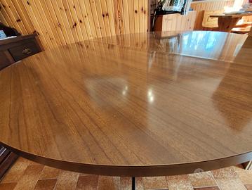 Comodo tavolo rotondo con sezione per allargarlo, con stabile basamento in metallo. Diametro 119 cm con + 30 di prolunga. Disponibili per visione