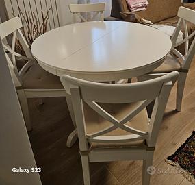 vendo tavolo rotondo bianco allungabile da 1.10 cm a 1.55 cm super comodo per 8 persone e comodo per 10 persone. Sono comprese 5 sedie.