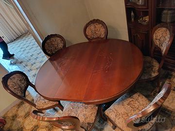 vendo tavolo rotondo allungabile vintage con 6 sedie coordinate, ottime condizioni, utilizzato solo per vista vintage in casa, niente crepature o altro.