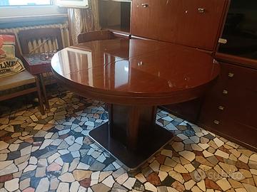 Elegante tavolo da pranzo rotondo allungabile con base centrale robusta. Finitura in legno lucido (colore mogano/ciliegio). Design che si adatta bene sia a contesti classici che moderni. Ideale per ottimizzare lo spazio e ospitare più persone quando allungato. Diametro: 115 cm