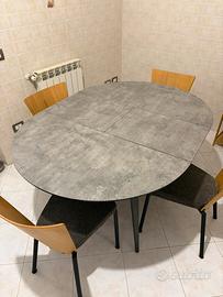 Vendo tavolo da cucina rotondo allungabile, piano effetto cemento con gambe nere, stile moderno.