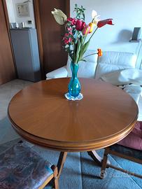 Vendo elegante set da sala da pranzo composto da tavolo rotondo allungabile e 6 sedie coordinate, risalente agli anni 2000, in condizioni eccellenti.