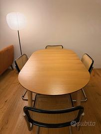 Tavolo in buono stato di Kave Home. Diametro 90 cm ma allungabile con due prolunghe in dotazione. Atriva fino a 170 cm di lunghezza e ospita fino a 8 persone. Ha qualche segno indicato in foto