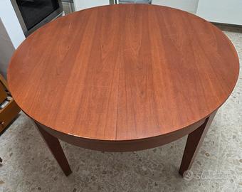 vendo tavolo rotondo allungabile in legno. Le misure sono: 124.5 cm larghezza e 179 cm di lunghezza. È stato usato poche volte e ha delle piccole scheggiature sui bordi visibili nelle foto. prezzo: 75€ Ritiro zona Maccarese.