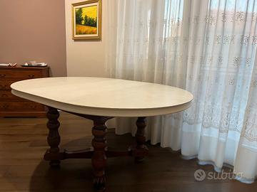 tutto legno. il piano è stato verniciato di bianco per fargli un aspetto meno antico. gli va data una ripassata di vernice (solo sul piano). il resto è perfetto.