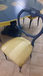 Bellissimo tavolo rotondo allungabile shabby, ridipinto a mano ,con 4 sedie abbinate.