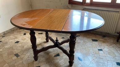 Tavolo rotondo (diametro 116cm) con prolunga a scomparsa di 40cm per un totale tutto aperto di 156cm Possibilità di abbinare 6 sedie e credenza per completare l'arredamento del soggiorno con lo stesso stile