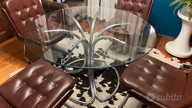 Bellissimo tavolo originale anni 70 con base in metallo cromato e vetro Ø 120 cm.