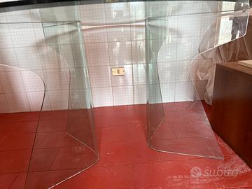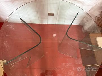 Vendo tavolo in vetro cristallo di diametro 120 cm composto da 3 pezzi, i 2 piedi a onda ed il piano rotondo, tutti dello stesso materiale e spessore.