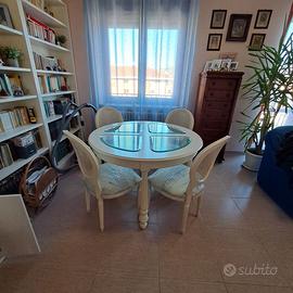 tavolo rotondo con 4 cristalli molati in stile color bianca con 4 sedie in stile diametro 1,20