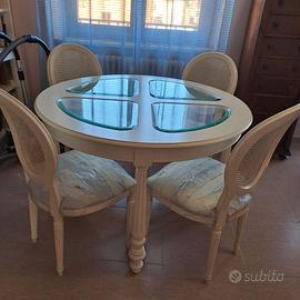tavolo rotondo diametro 1,20 bianco in stile con 4 sedie in stile come foto