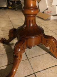 Tavolo rotondo da centro in legno massello e intarsi colore noce. Lavorazione di Cantu’. Diametro cm 100. Come nuovo.
