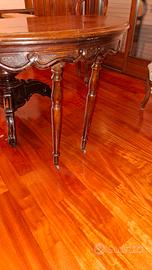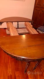 tavolo in noce in ottime condizioni dell'800..rotondo diametro 118 cm. allungabile. con piedini di sostegno a scomparsa. Gli allunghi sono moderni tinta noce. 4 sedienuguali sempre '800