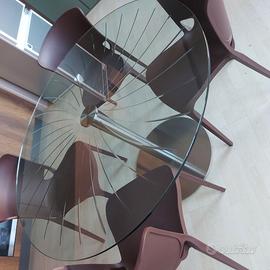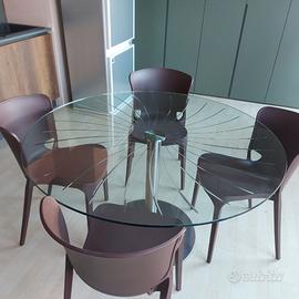 Vendo tavolo rotondo di cristallo diametro 130 cm , completo di 4 sedie design nuove. Visibile a Vedano al Lambro. (MB ) Trasporto a carico dell'acquirente.