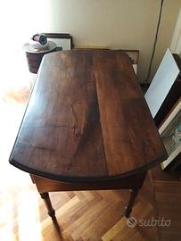 ottimo stato legno massicco presente un cassetto per lato, totale due cassetti. ante laterali richiudibili, diventa un tavolo rettangolare ottimo per salotto/soggiorno e cucina. no offerte