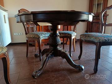 Tavolo rotondo e 4 sedie vintage, le condizioni sono molto buone, arredamento vintage scarsamente utilizzato in passato