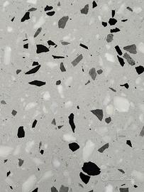 Vendo elegante set da pranzo composto da tavolo rotondo effetto terrazzo e 4 sedie coordinate. Il piano del tavolo presenta una bellissima finitura terrazzo bianca con inserti neri e grigi, molto moderna e perfetta per ambienti contemporanei. La struttura del tavolo e delle sedie è in metallo verniciato color antracite, con design leggero ed elegante. Le sedie hanno schienale a barre sottili e cuscini imbottiti grigio scuro removibili, molto comodi. Il set è in condizioni eccellenti, pari al nuovo, usato con grande cura. Caratteristiche • Tavolo rotondo • Diametro: 90 cm • Piano effetto terrazzo • Struttura metallo verniciato antracite • 4 sedie coordinate • Cuscini removibili Ideale per cucina, sala da pranzo o open space. Perfetto per 4 persone. Prezzo: 950 € trattabili Ritiro a mano.