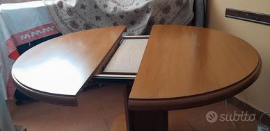 tavolo rotondo in noce chiaro, perfetto non ammaccato o sfrisato, estendibile fino ad accogliere dieci persone.