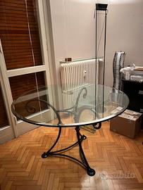 Tavolo rotondo in cristallo con base in ferro