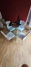 tavolo rotondo in cristallo e 4 sedie