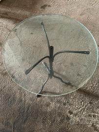Tavolo rotondo. Base in ferro battuto anni 50/60. Piano in cristallo da 8mm diametro 60cm.
