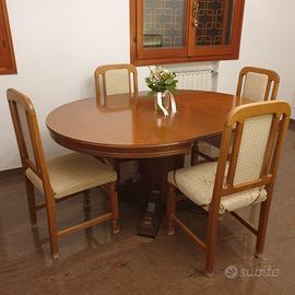 Vendo tavolo rotondo in legno massello, elegante e solido, completo di 6 sedie coordinate.