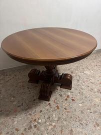 Vendo elegante tavolo rotondo in legno, stile classico, con piede centrale scolpito.