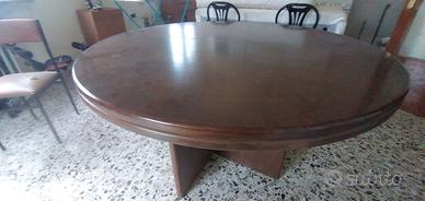 Vendo tavolo sala pranzo rotondo cm 150 in legno lamellare anche allungabile; vendo piedistallo con piedi in legno massello verniciato bianco per appoggio tavolo o altro magari in vetro;