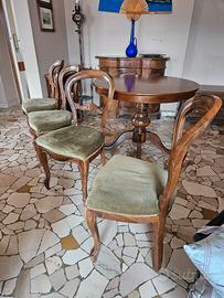Tavolo rotondo in legno anni '70 con 4 sedie