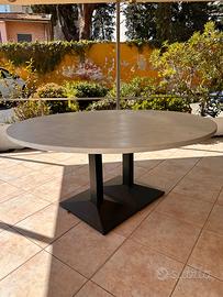 Vendo tavolo rotondo in legno con robuste gambe in ferro.
