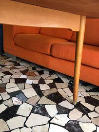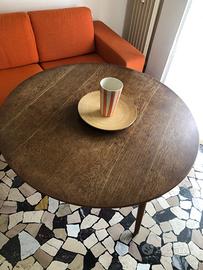 Tavolo rotondo in legno (teak), stile scandinavo anni ‘60, con 3 gambe.
