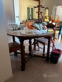 Tavolo decorato completamente in legno, completo di 5 sedie abbinate, il tavolo è circa 100cm di diametro