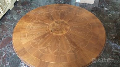 Tavolo rotondo in legno intarsiato