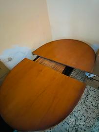 Vendo bellissimo tavolo rotondo in legno, solido e di ottima qualità. Il tavolo è allungabile grazie alla prolunga centrale, quindi può essere utilizzato sia rotondo che più grande quando serve.