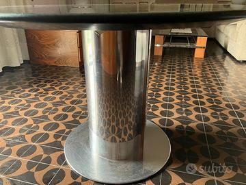 - Tavolo tondo diametro 120 cm alto 79. - Piani in marmo verde, base in acciaio con due inserti in legno di palissandro - Ritiro solo a mano ad Albino (BG)