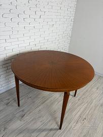 Tavolo rotondo in mogano, anni ’60, produzione della storica ebanisteria Garola di Padova.