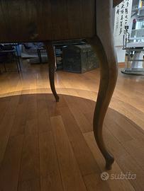Struttura solida con quattro gambe sagomate in stile classico e piano con bellissima venatura naturale.