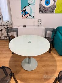 Vendesi elegante tavolo rotondo in vetro satinato, diametro 100 cm. Le sedie non sono in vendita. Consegna a mano a Udine o Trieste.
