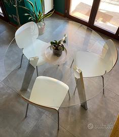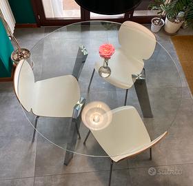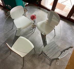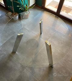 Elegante tavolo da cucina /sala da pranzo/ living -Vetro temperato -Gambe in acciaio lucido Marca Kavehome Modello Carib Diametro 130 cm Altezza 75 cm Spessore vetro 12mm Buono stato . Presenta graffi da utilizzo