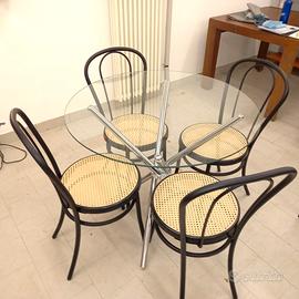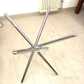Vendo bellissimo tavolo rotondo con piano in vetro temperato e con quattro gambe a crociera in acciaio cromato