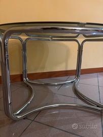 Tavolo rotondo in vetro e cromo stile Space Age anni 70